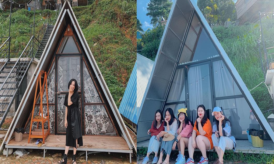 Một điểm sống ảo không thể bỏ qua tại nơi đây chính là nhà chữ A không khép kín với 2 giường to, rộng rãi bên trong. Dù là ngày hay đêm, chỉ cần mở cửa ra là bạn có thể chiêm ngưỡng toàn cảnh mây trời Tam Đảo.