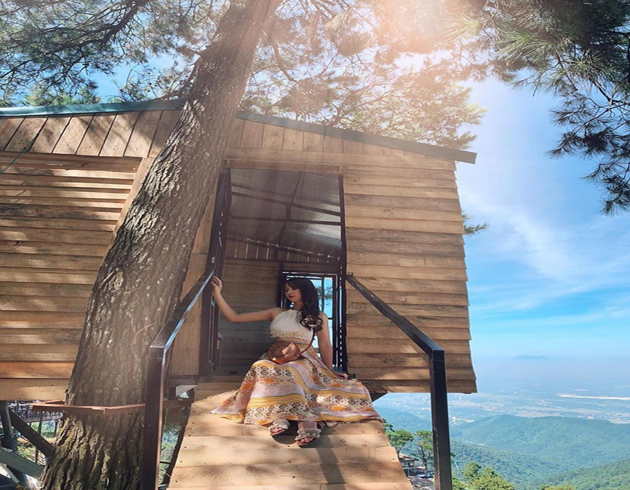 Nhà mây là căn nhà nằm ở vị trí cao nhất nên từ đây bạn có thể ngắm trọn khung cảnh của Tam Đảo mộng mơ.