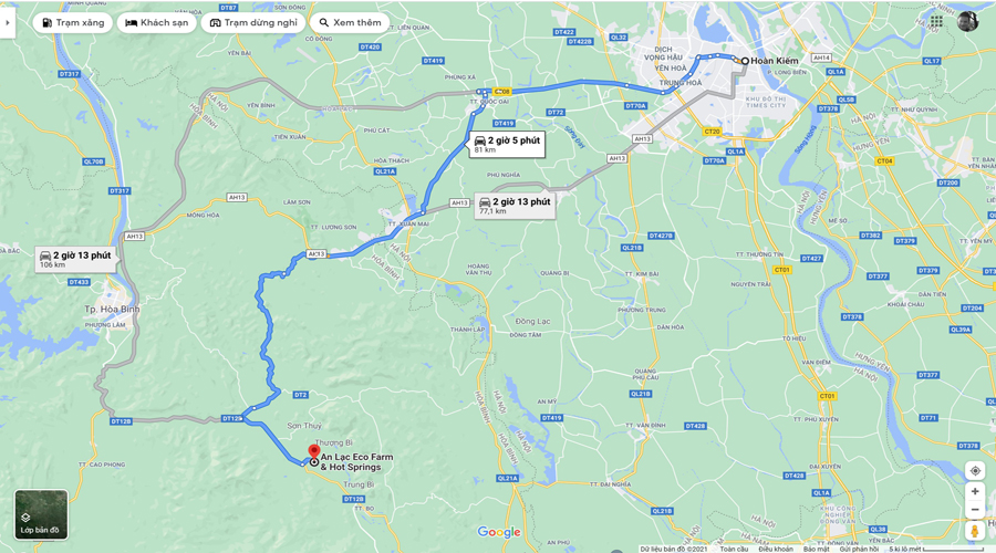 Hãy đi theo gợi ý từ ứng dụng Google Maps, bằng cách tải về điện thoại và mở ứng dụng. Sau đó tại mục tìm kiếm, nhập từ khóa “An Lạc resort - Hòa Bình”, lựa chọn phương tiện dự định di chuyển. Bấm vào mục bắt đầu để được điều hướng theo tuyến đường thuận tiện nhất nhé.