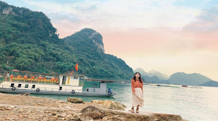 Tiếp tục hành trình du khách lên thuyền ngắm cảnh hồ thủy điện Hòa Bình (Hồ Ba Khan) với nhiều đảo lớn nhỏ tựu như vịnh Hạ Long.