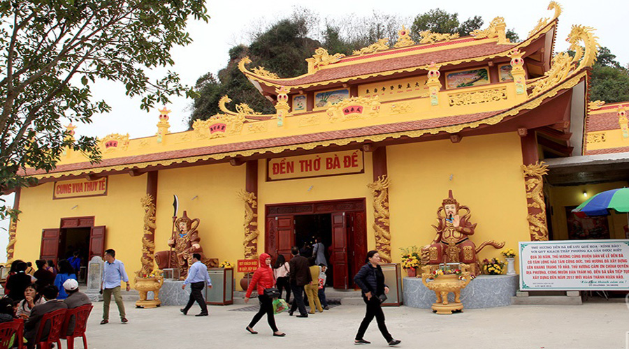 13h30: Xe và hướng dẫn viên đưa đoàn thăm quan và chiêm bái Đền Bà Đế, một ngôi đền rất linh thiêng tại Đồ Sơn - Bà là vợ chúa Trịnh Giang. Ðền bà được vua Tự Ðức về thăm và ban sắc phong “Ðông Nhạc Ðế Bà - Trịnh chúa phu nhân”.