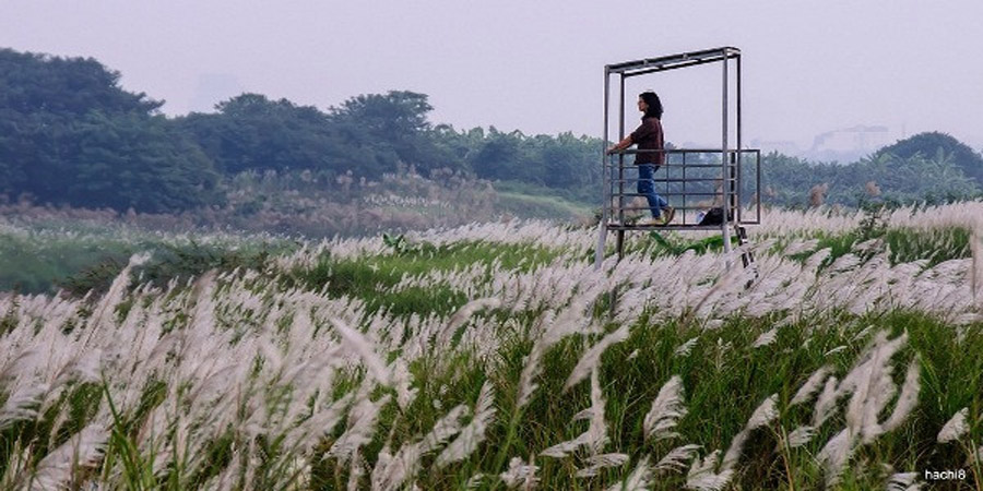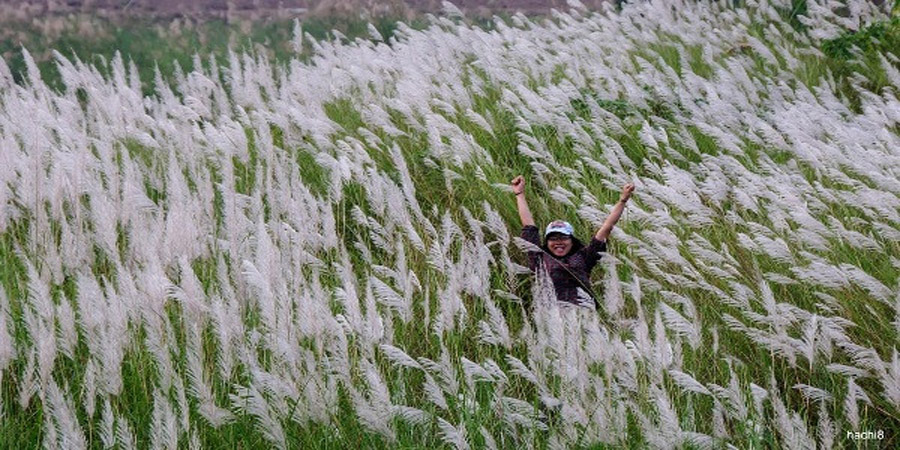 Đứng trên cầu Chương Dương hoặc cầu Long Biên trăm tuổi nhìn xuống, rừng cỏ lau trắng, nhẹ nhàng đua đưa trong gió, cả không gian nhuốm một màu trắng tinh khôi.