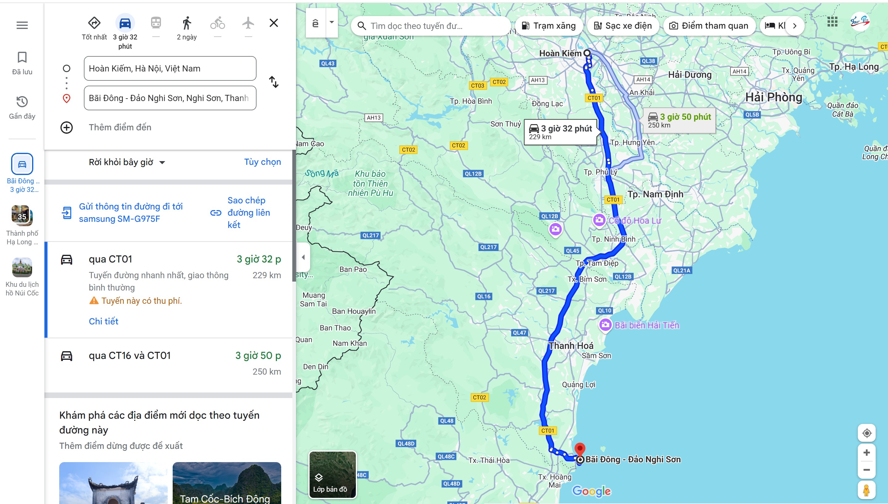 + Ngoài ra nếu du khách đi du lịch Bãi Đông tự túc, nên sử dụng Google Maps. Tải ứng dụng Google Maps từ cửa hàng Google Play hay App Store về điện thoại và mở ứng dụng, sau đó nhập tại mục tìm kiếm từ khóa “Bãi Đông - Nghi Sơn”, lựa chọn phương tiện dự định di chuyển, nhấp tiếp vào mục bắt đầu để được điều hướng tuyến đường đi phù hợp.