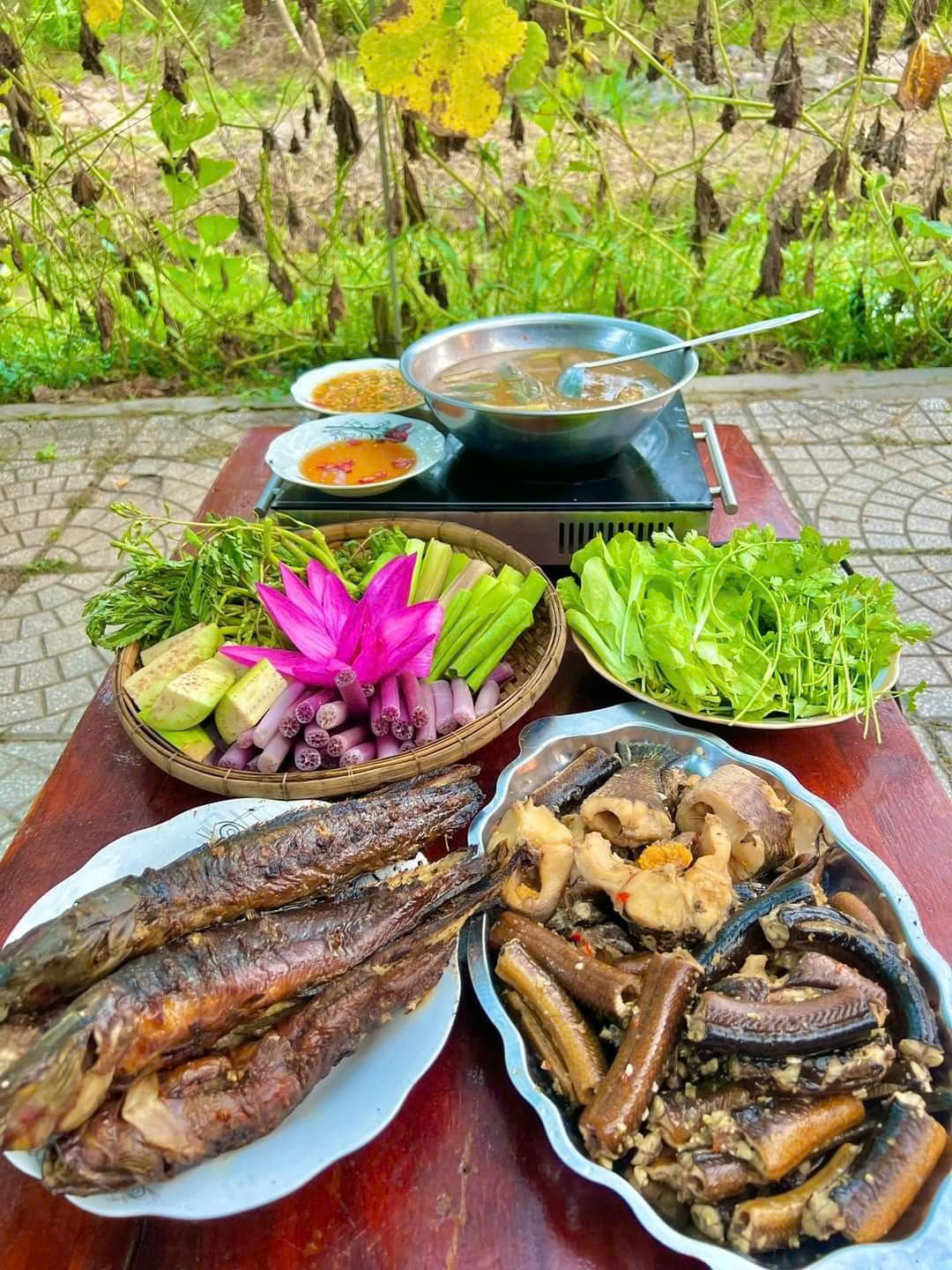 + Các bữa ăn theo chương trình (2 ngày 1 đêm): 3 bữa chính 150.000đ/bữa và 1 bữa ăn sáng ở khách sạn 40.000 đ/bữa/khách.