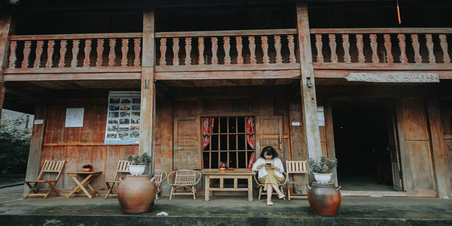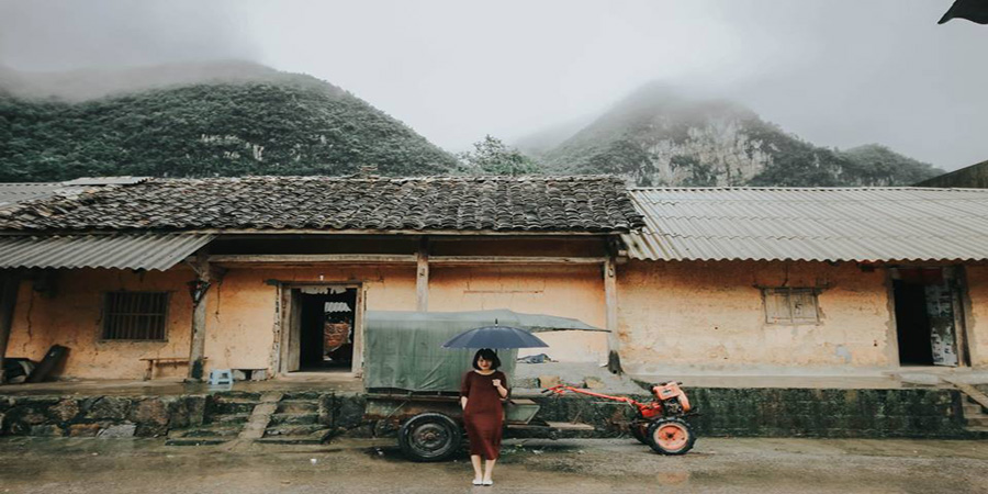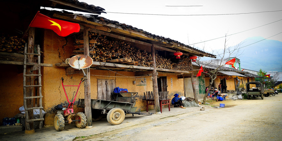 Từ phía xa xa trông về Phó Bảng là những ngôi nhà bé xíu hiện ra sẽ khiến bạn không ngừng liên tưởng đến vùng đất đẹp xinh thường xuất hiện trong những câu chuyện cổ tích. Những ngôi nhà trình tường liêu xiêu bạc màu thời gian, với mái ngói ống rêu phong bao đời, với cánh cửa gỗ mộc mạc, với giấy bản trước mỗi khung cửa, với chiếc đèn lồng đỏ,...