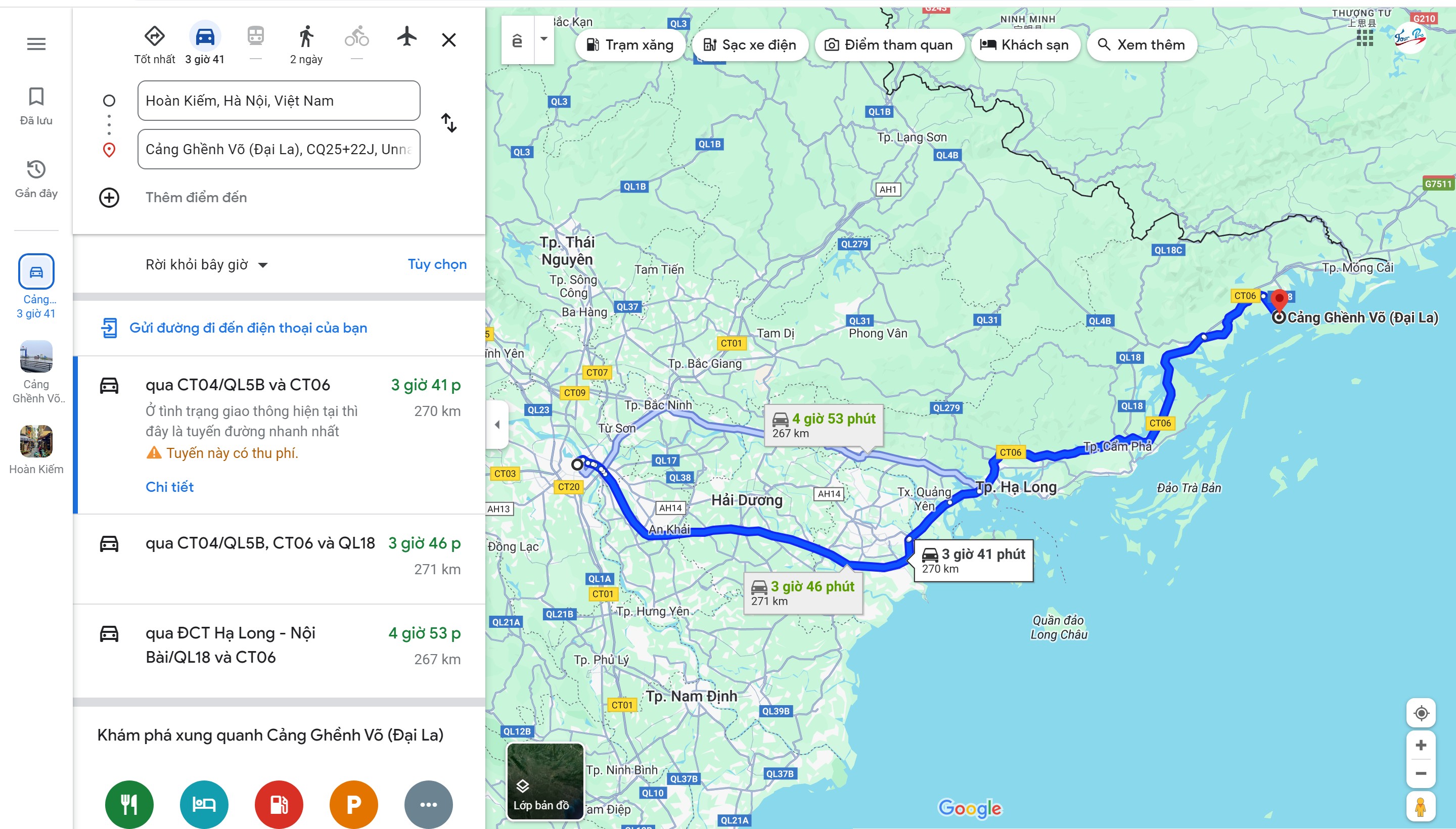 {Tàu (xuồng) cao tốc ra đảo Cái Chiên} Nếu bạn muốn di chuyển bằng tàu cao tốc đến Cái Chiên thì bạn phải đặt trước với các chủ tàu hoặc các công ty du lịch. Phương tiện này rất thuận tiện nếu bạn đi theo nhóm hoặc gia đình đông người. Một tàu cao tốc chỉ chở từ 18 - 20 người.