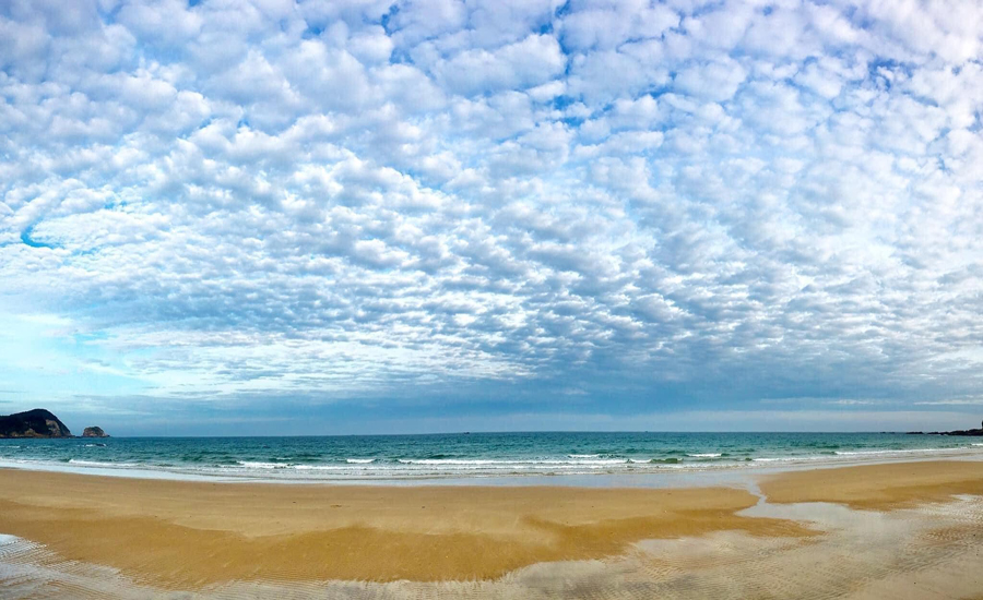 Điểm đặc biệt của bãi biển này gồm nhiều bãi biển hình cánh cung nối tiếp nhau và cách nhau bởi những bãi đá nơi đầu các mỏm núi, ngăn chia thành các bãi biển khác nhau.