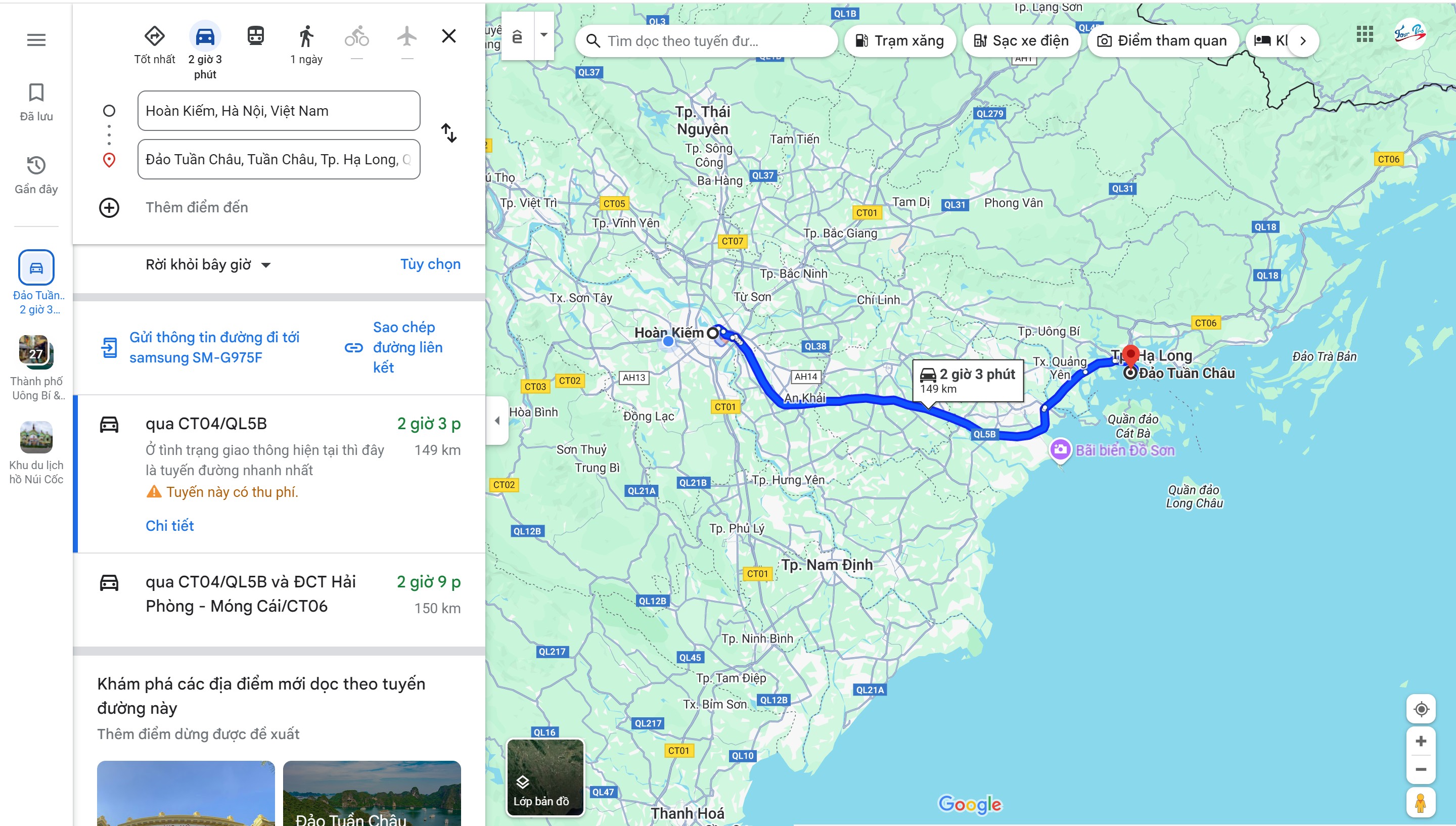 + Di chuyển bằng ô tô: Xuất phát từ bảo tàng Hà Nội, du khách di chuyển theo CT20 -> rẽ phải đi theo ĐCT Hà Nội - Hải Phòng -> Cao Tốc Hạ Long - Hải PHòng, tiếp tục rẽ phải QL18 đi thẳng sẽ sẽ nhìn thấy biển chỉ dẫn vào cảng Tuần Châu. Để thuận tiện hơn trong quá trình di chuyển, du khách có thể kết hợp với ứng dụng Google Maps sẽ có chỉ dẫn chi tiết.