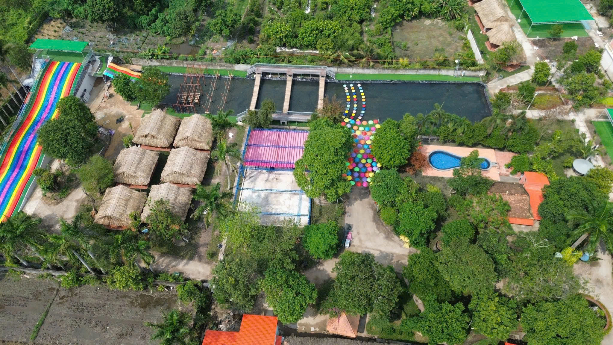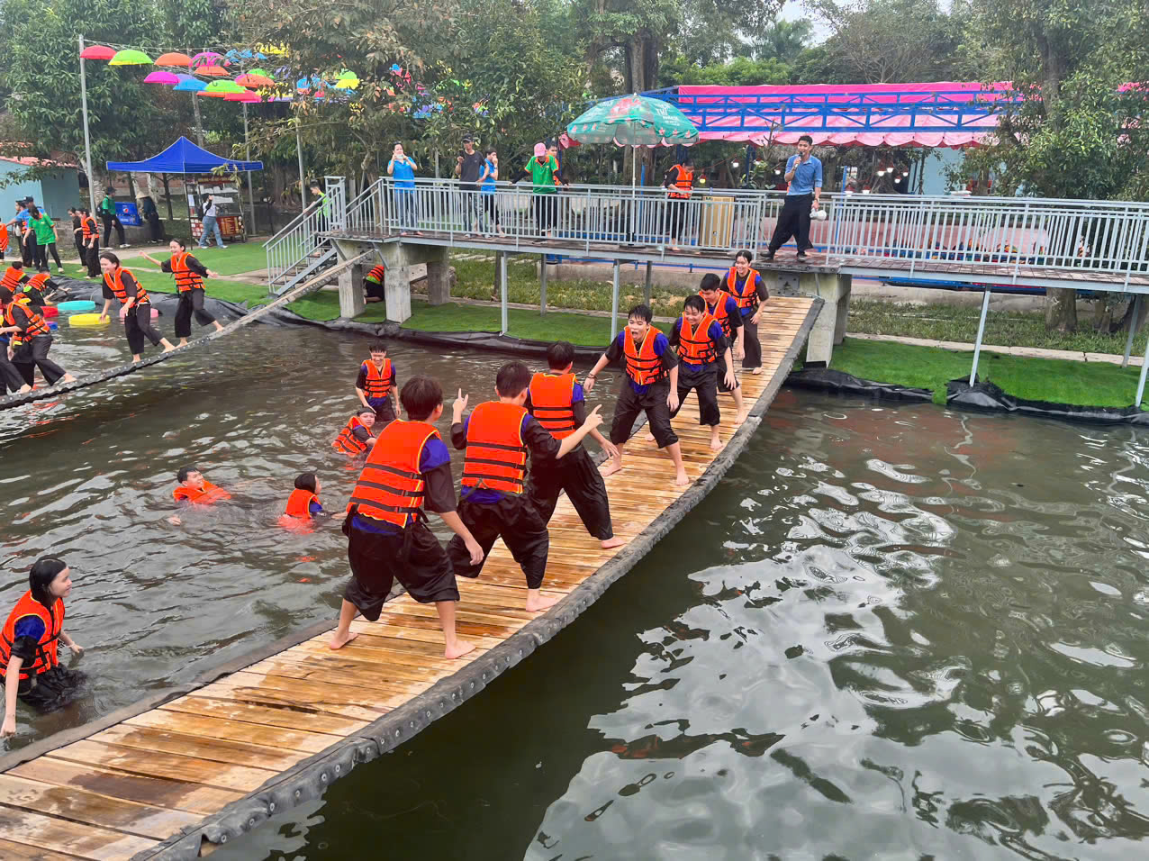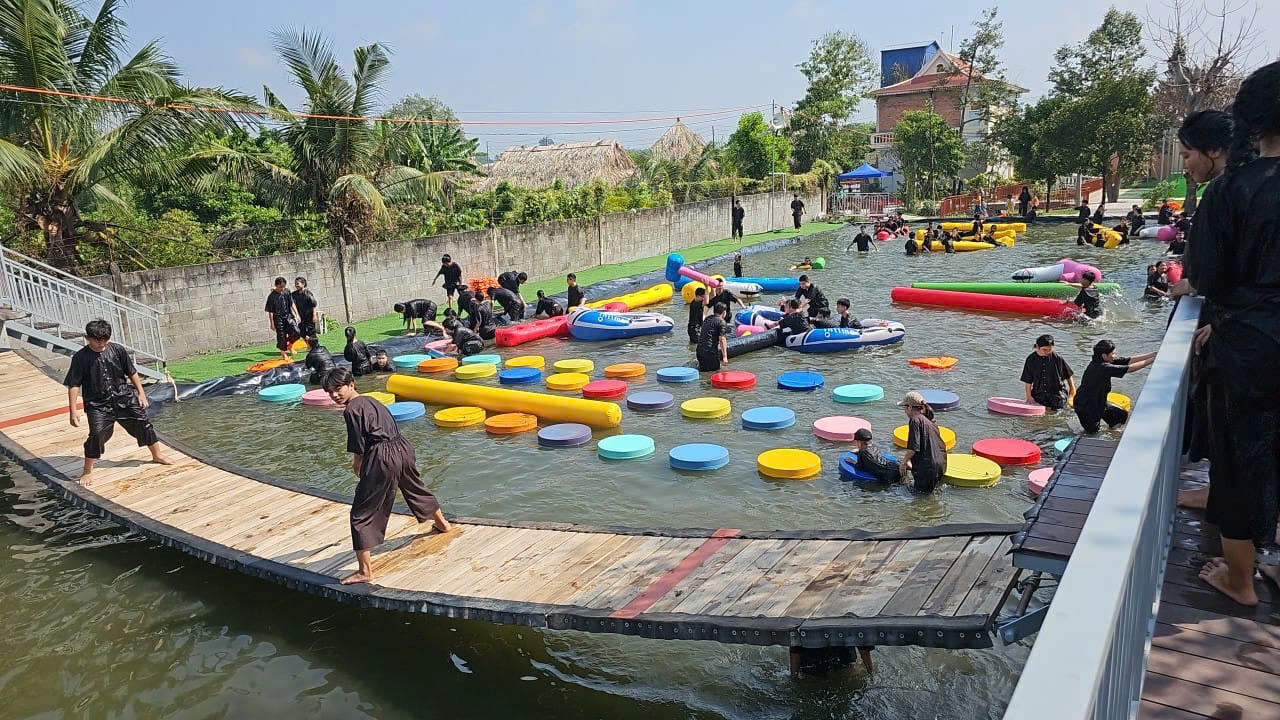 + Khu teambuilding: Không gian rộng rãi, bằng phẳng, rất phù hợp cho các hoạt động tập thể và gắn kết đội nhóm.. Nơi đây diễn ra nhiều trò chơi vận động vui nhộn như kéo co, vượt chướng ngại vật, chuyền bóng đồng đội hay thử thách phối hợp nhóm, giúp khuấy động tinh thần và tạo không khí sôi nổi. Giữa khung cảnh thiên nhiên thoáng đãng, các hoạt động teambuilding trở nên hào hứng và tràn đầy năng lượng hơn. Đây là lựa chọn lý tưởng cho các đoàn công ty, lớp học hay nhóm bạn muốn vừa vui chơi vừa tăng sự kết nối.