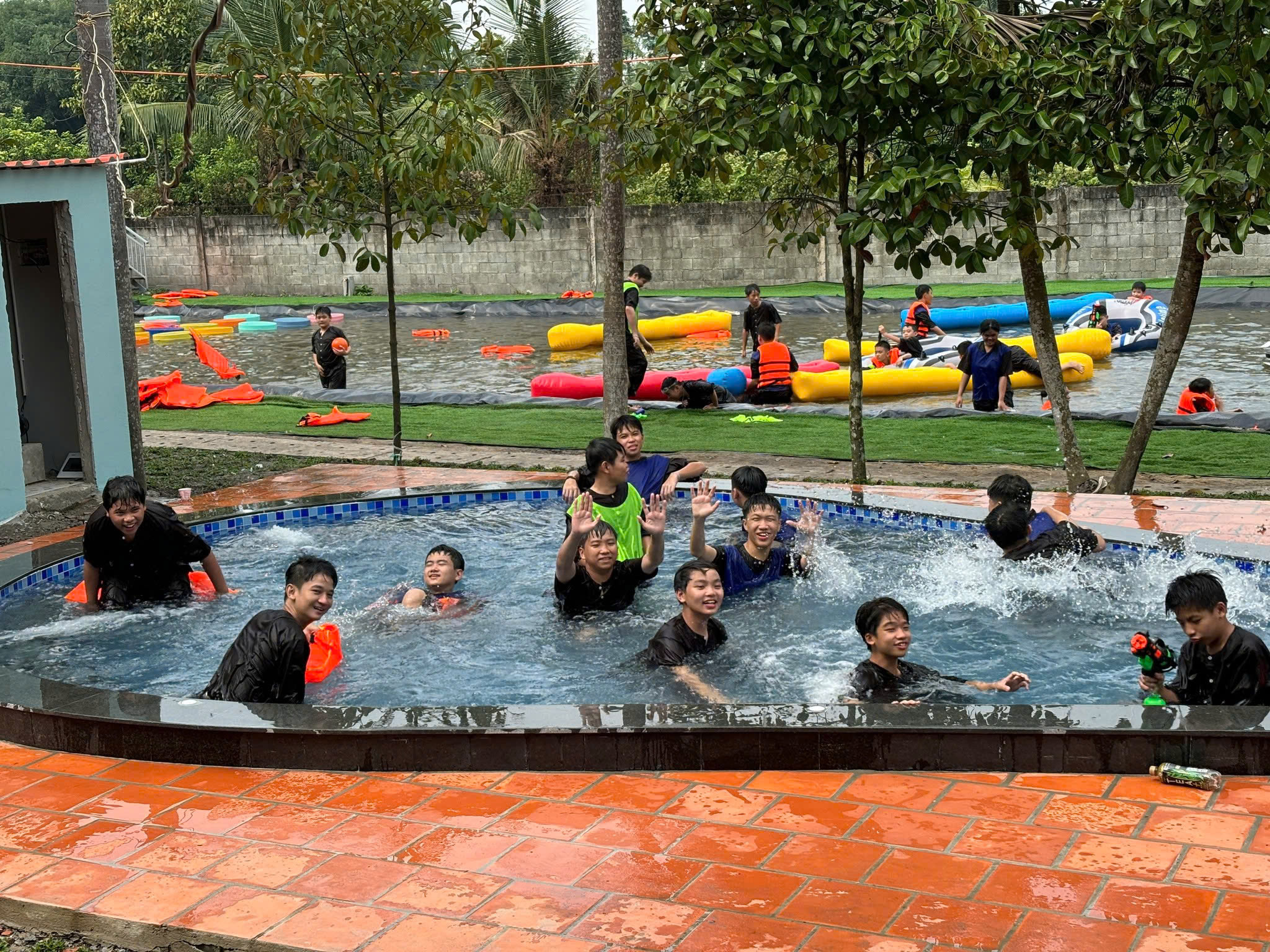 + Khu hồ bơi: Hồ bơi tại Đất Thép Farm được thiết kế phù hợp cho trẻ em, mực nước không quá sâu và có khu vực quan sát, cứu hộ. Các bạn nhỏ có thể tập bơi, chơi những trò ném bóng, rượt đuổi trong nước, vừa rèn kỹ năng bơi lội cơ bản vừa tăng sự tự tin khi tiếp xúc với môi trường nước. Đây cũng là nơi lý tưởng để cả nhóm “hồi sức” sau khi đã be mương, trượt phao hay chơi teambuilding.
