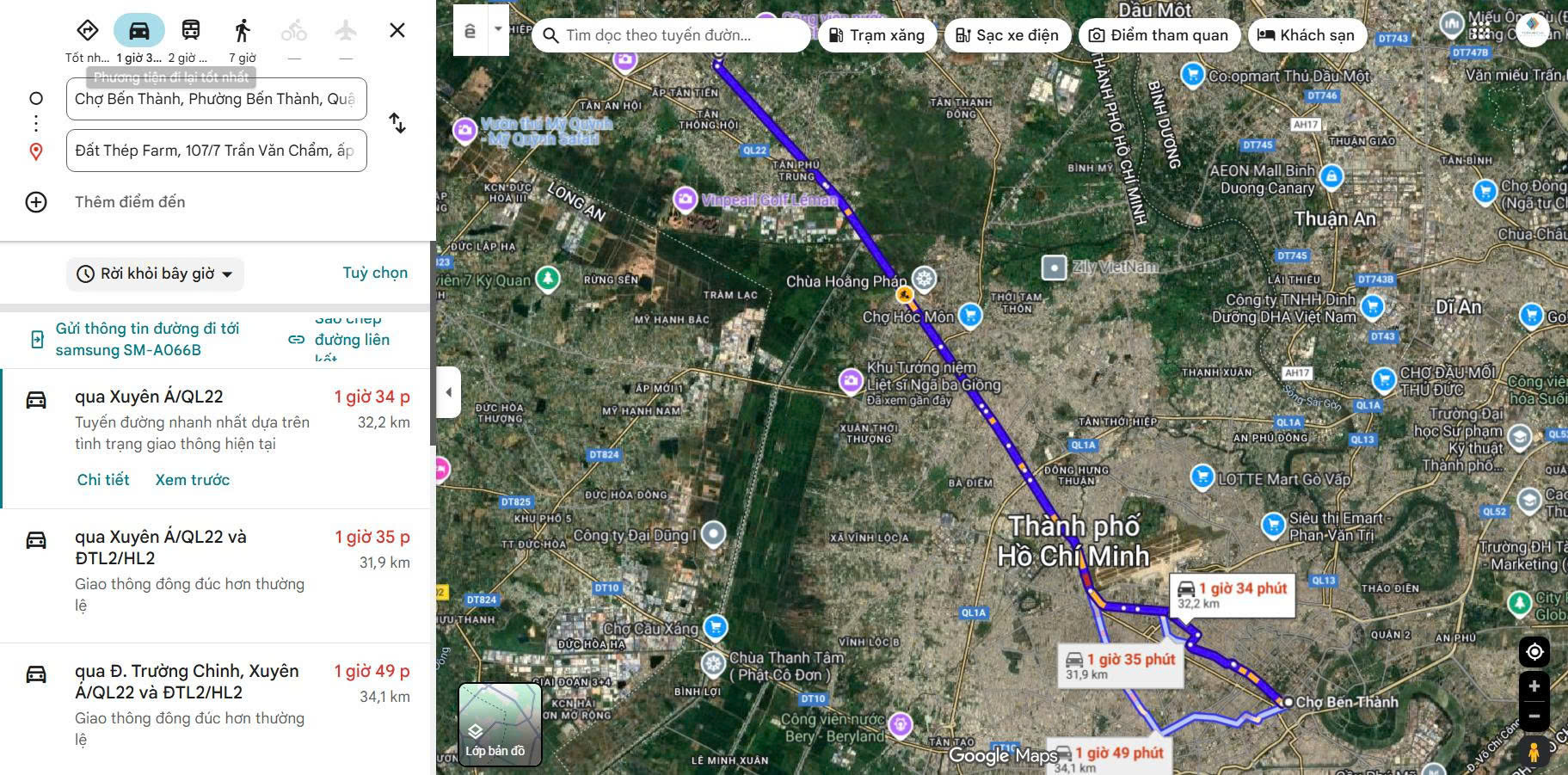 {Đất Thép Farm Củ Chi} nằm cách khu vực trung tâm thành phố Hồ Chí Minh khoảng 32,2km, thời gian di chuyển khoảng 1 giờ 30 phút bằng ô tô tùy mật độ giao thông theo chỉ dẫn từ Google Maps. Việc di chuyển đến Đất Thép Farm tương đối dễ dàng nhờ nằm gần các trục đường lớn hướng về Củ Chi, kết nối trực tiếp với nội thành thông qua Quốc lộ 22 và Tỉnh lộ 8. Dưới đây là gợi ý lộ trình chi tiết bạn có thể tham khảo: