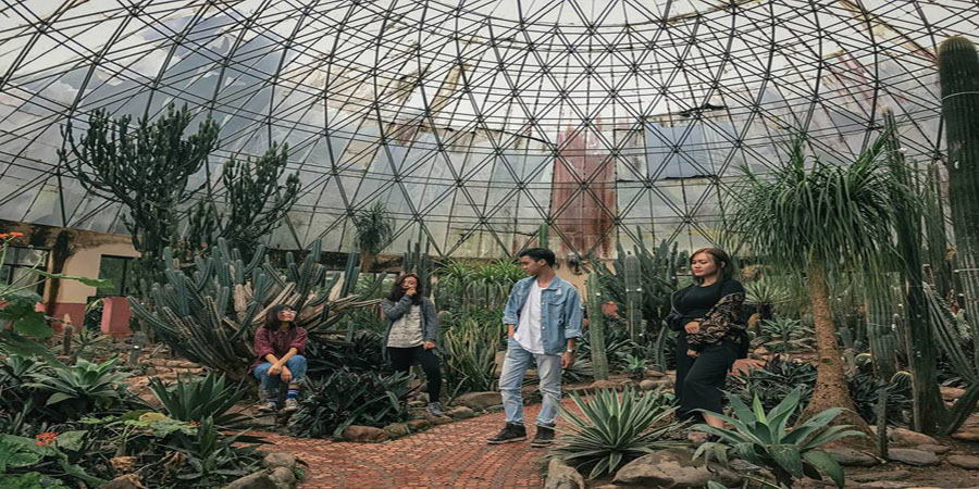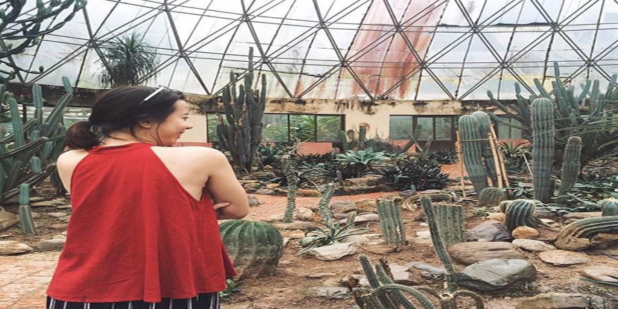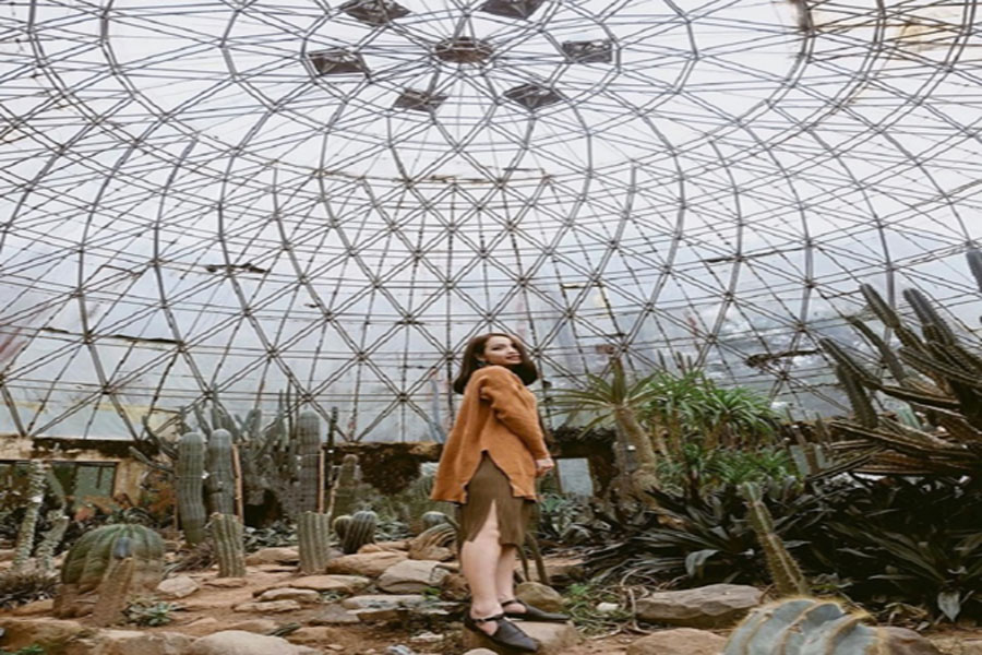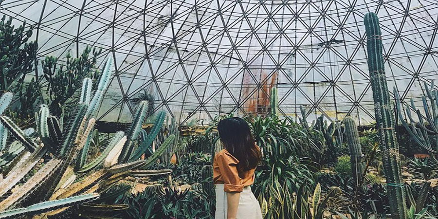 Bước chân vào ngôi nhà kính, cảm giác như bạn đang đi lạc vào trong lòng một quả địa cầu lớn với một thế giới hoàn toàn khác: thế giới của màu xanh, và của những loại cây bạn không hề biết chính xác tên mà chỉ biết gọi chung là xương rồng. Mỗi cây một vẻ, mỗi cây một hình thù, tất cả đều khiến những ai đặt chân đến đây đều phải choáng ngợp.