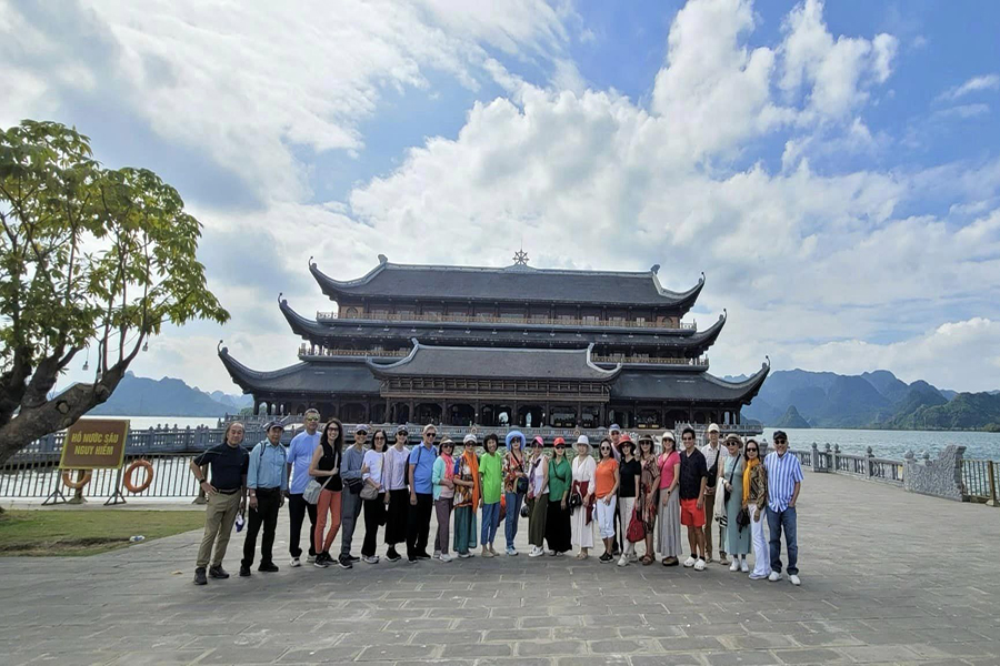 Tiếp theo lịch trình du khách đến làm lễ, chiêm bái và tham quan tại khu du lịch tâm linh nổi tiếng chùa Bái Đính - Một trong những điểm du lịch đầu xuân hấp dẫn của tỉnh Ninh Bình, Ngôi chùa đã xác lập rất nhiều kỷ lục như: Chùa có hàng tượng La Hán lớn nhất Việt Nam; có bộ tượng Tam Thế bằng đồng lớn nhất Việt Nam; có Đại Hồng Chung lớn nhất Việt Nam; Chùa có tượng Phật Thích Ca bằng đồng lớn nhất Việt Nam…
