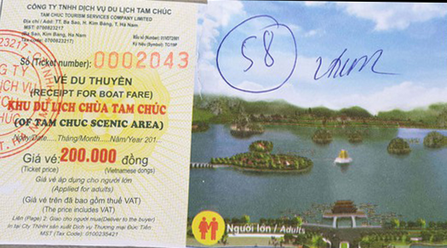 + Vé đi thuyền chùa Tam Chúc 270.000 VND/Khách.