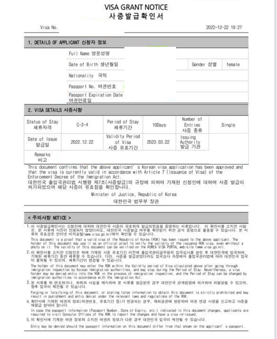 + Visa nhập cảnh Hàn Quốc.