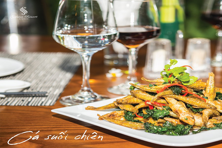 Đồ ăn tại Serena Kim Bôi Resort rất phong phú, đa dạng. Bữa sáng ở đây vào ngày thường sẽ có menu theo set còn cuối tuần thì là tiệc buffet. Các loại đồ uống ở đây cũng rất nhiều để đáp ứng nhu cầu khách hàng. Đồ tráng miệng cũng khá ngon với nhiều loại hoa quả khác nhau.