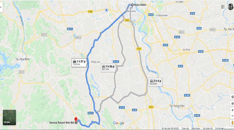 + Đi Serena Hòa Bình bằng ô tô: xuất phát từ Hà Nội, xe đi theo hướng TT. Chúc Sơn trên quốc lộ 13, sau đó tiếp tục đi dọc trên trục đường 21A, đến ủy ban xã Thanh Nông rẽ trái đi theo hướng Sào Báy, qua cầu Sào Báy bắc qua sông Bôi khoảng 1km nữa là đến, thời gian di chuyển khoảng 2 giờ đồng hồ nhé.