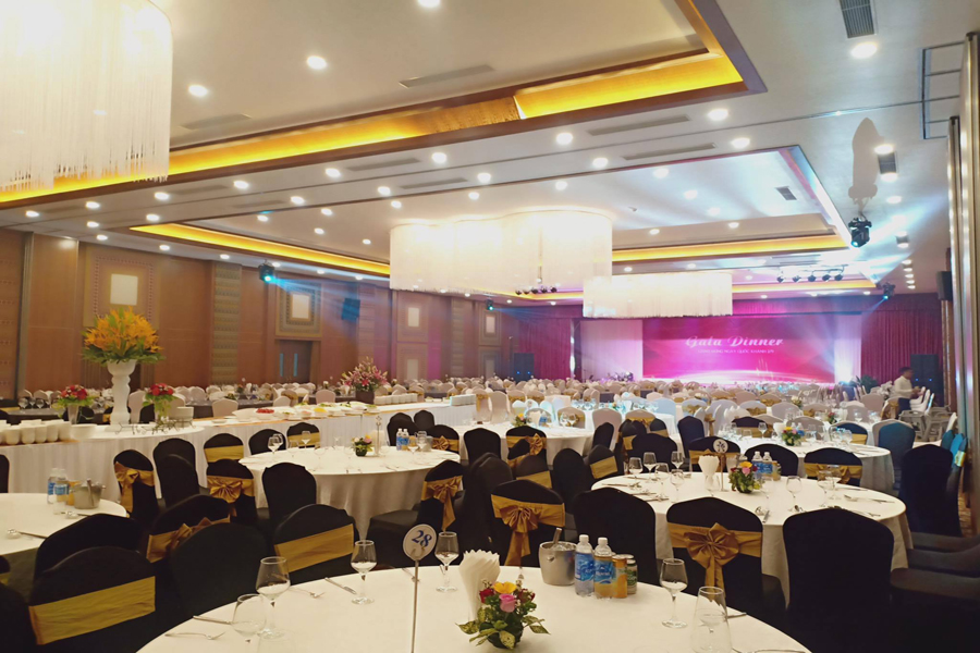+ Hội trường sân khấu Gala dinner (Hội trường sức chứa tối đa 500 khách) 18,000,000 VNĐ/buổi (set up sân khấu, âm thanh, ánh sáng, màn chiếu, máy chiếu).