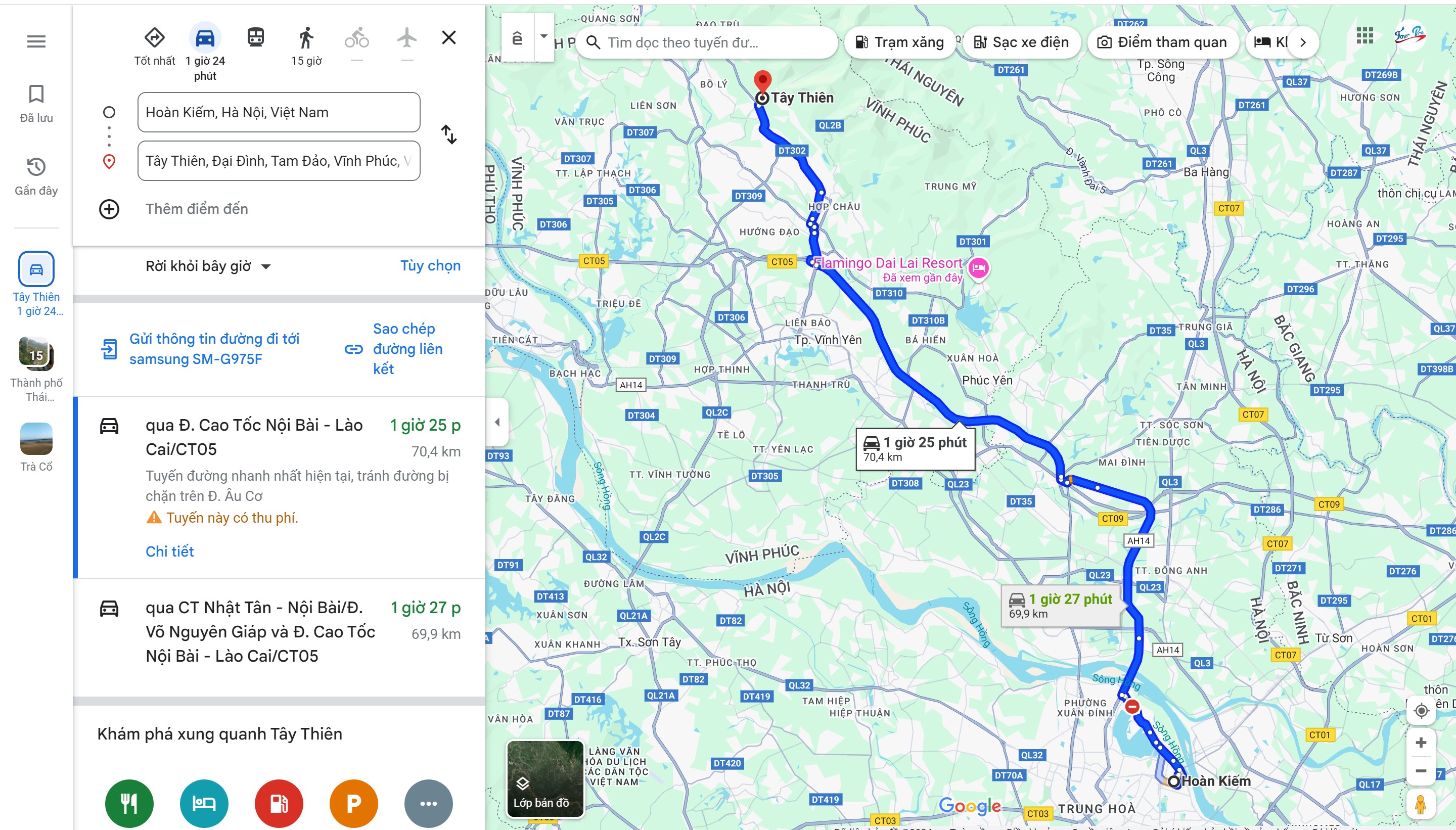 Để có thể di chuyển một cách chính xác nhất, bạn nên tải ứng dụng chỉ đường Google Maps về điện thoại thông minh của mình. Nhập điểm đến là “Thiền viện trúc lâm Tây Thiên - Tam Đảo” và lựa chọn phương tiện xe máy là sẽ được chỉ dẫn chi tiết lộ trình thuận tiện mà dễ đi nhất.