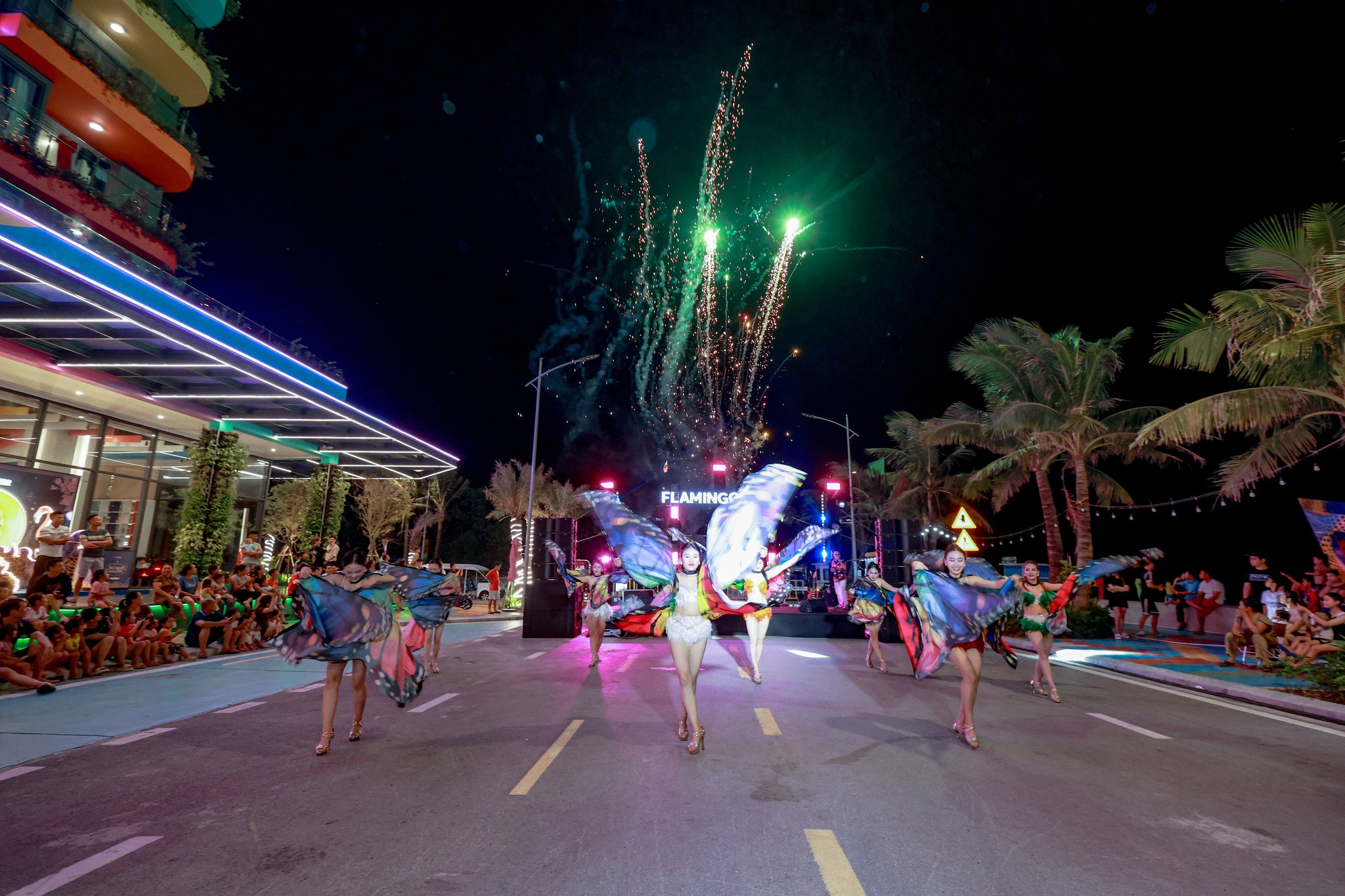 + Phố đi bộ Flamingo, trải nghiệm ẩm thực, mua sắm: Trải nghiệm không thể không tham gia của những vị khách “hướng ngoại”. Hòa vào không gian ngập tràn màu sắc cùng hệ thống âm thanh, ánh sáng sôi động, dạo bước trên cung đường rặng dừa “vi vu” theo gió, hít hà hơi mặn mòi của đại dương... khiến cho du khách tiếp thêm được năng lượng tích cực sảng khoái. Hơn nữa, bạn đừng quên dạo quanh khu ẩm thực để thưởng thức các món ăn vặt kích thích vị giác hay mua sắm đồ lưu niệm về trưng bày hay làm quà tặng.