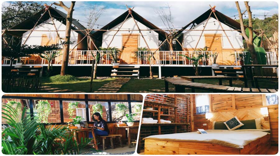 -    Nhà bìa gỗ (tháng 3): 720.000VNĐ/đêm/căn (từ thứ 2 – thứ 6) và 820.000VNĐ/đêm/căn (cuối tuần). Trong phòng có 2 giường to, nhà vệ sinh, nhà tắm biệt lập.