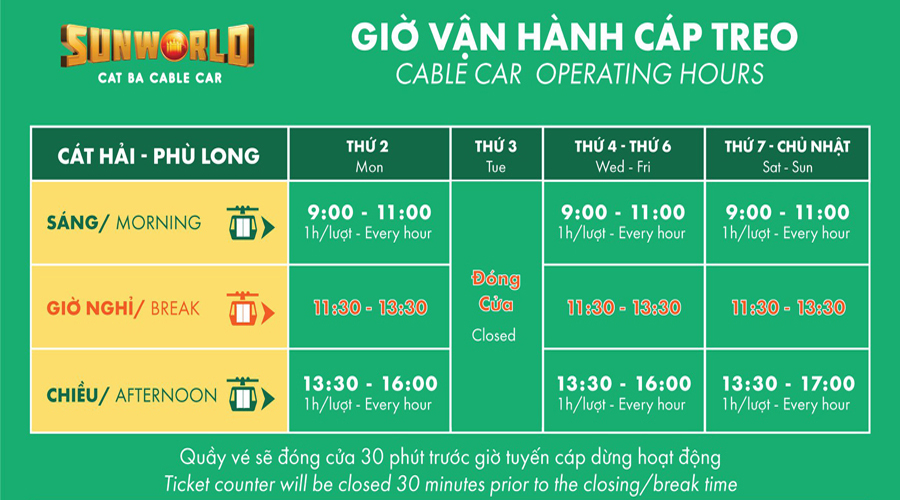 Tháng năm vừa qua Sun World Cát Bà mới chỉ có thông báo đón du khách cho tuyến cáp treo tới Phù Long. Chặng từ ga Cát Hải - Cái Đồn, Cát Bà và ngược lại vẫn trong quá trình thử nghiệm.