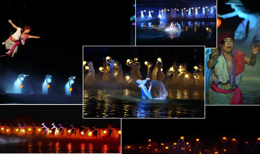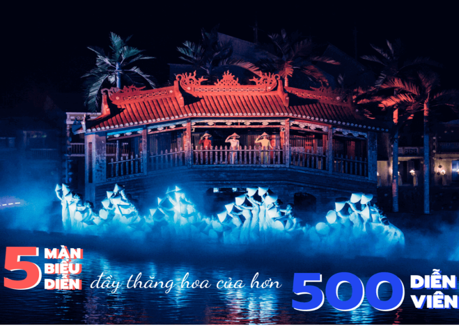 Show thực cảnh “kí ức Hội An” là chương trình biểu diễn thực cảnh hội tụ những gì tinh hoa nhất của nghệ thuật đương đại: diễn viên chuyên nghiệp, hiệu ứng sân khấu ngoạn mục, đạo cụ chỉn chu, vũ đạo điêu luyện, âm thanh, ánh sáng đẳng cấp… Sự kết hợp nhuần nhuyễn của 500 diễn viên trên sân khấu ngoài trời 25.000 m2 với bối cảnh sông nước, đồi núi nên thơ, mang đến cho khán giả hình dung về toàn bộ quá trình Hội An phát triển từ một làng nhỏ thành một điểm đến du lịch sôi động như hiện nay.