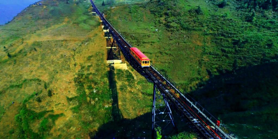 Là một trong những sản phẩm độc đáo của khu du lịch, tàu hỏa leo núi Mường Hoa ở độ cao 1.600 m đưa du khách từ Sun Plaza tại thị trấn Sa Pa qua một hành trình dài gần 2 km, khi ngồi trên con tàu đỏ rực với thiết kế cổ điển, để “bay” trên những cung đường đẹp nhất của thung lũng Mường Hoa, qua 2 hầm và 4 cầu cạn tới ga đi cáp treo Fansipan.