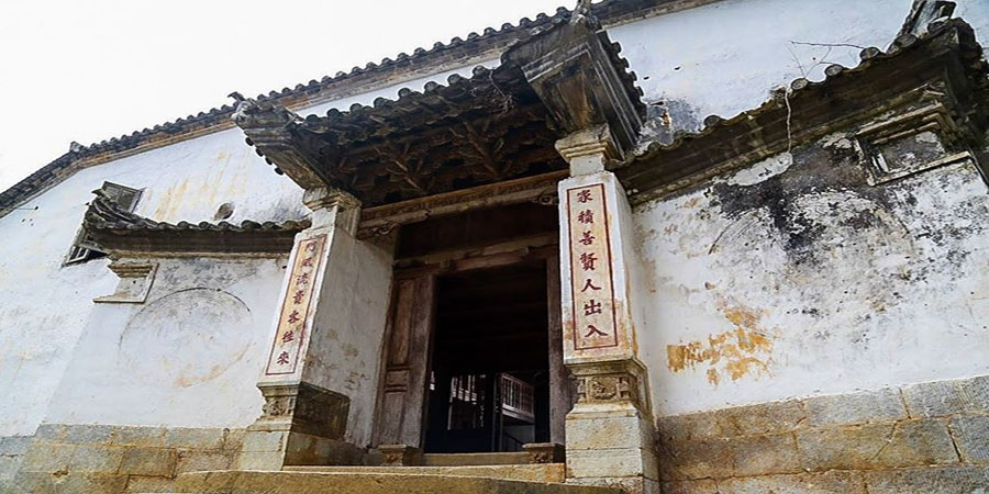 Bước vào khu dinh thự, ấn tượng đầu tiên là những hàng cây sa mộc cao vút, thẳng tắp hàng trăm năm tuổi. Chiếc cổng đá của dinh hiện lên bề thế được chạm trổ tinh tế. Cổng nhà cong, uốn lượn với những cánh dơi - biểu tượng cho chữ “phúc”. Mái cổng bằng gỗ được chạm khắc tinh xảo, với nhiều kiểu hoa văn.