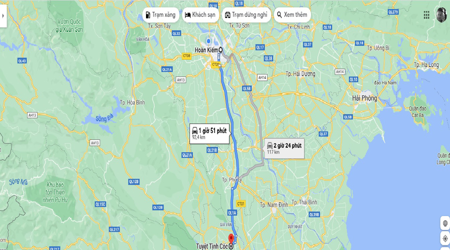 Theo điều hướng tốt nhất từ Google Maps, từ trung tâm Hà Nội đến Tuyệt Tịnh Cốc - Động Am Tiên có quãng đường 92,4km và 1 giờ 51 phút di chuyển. Bạn có thể đi theo tour trọn gói hoặc phượt bằng nhiều phương tiện khác nhau như xe khách, xe buýt, xe máy, ô tô cá nhân.