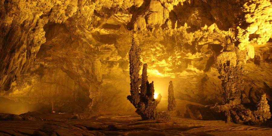 Bước vào hang, du khách sẽ bị choáng ngợp bởi vẻ đẹp kỳ thú được tạo nên bởi những lớp thạch nhũ vàng rực. Vô vàn nhũ đá mọc từ dưới lên, từ trên các vòm đá cao rủ xuống với nhiều hình dạng, phản chiếu ánh sáng lung linh, huyền ảo.