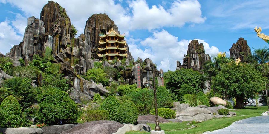 Để lên được đến các chùa và hang động trên núi Thủy Sơn bạn có thể đi theo hai con đường: Từ cổng phía tây của núi gồm có 156 bậc tam cấp dẫn đến chùa Tam Thai hoặc đi theo hướng đông của cổng gồm có 108 bậc dẫn lên chùa Linh Ứng. Đa số du khách đều lên núi theo cổng phía tây và đi xuống bằng cổng phía đông.