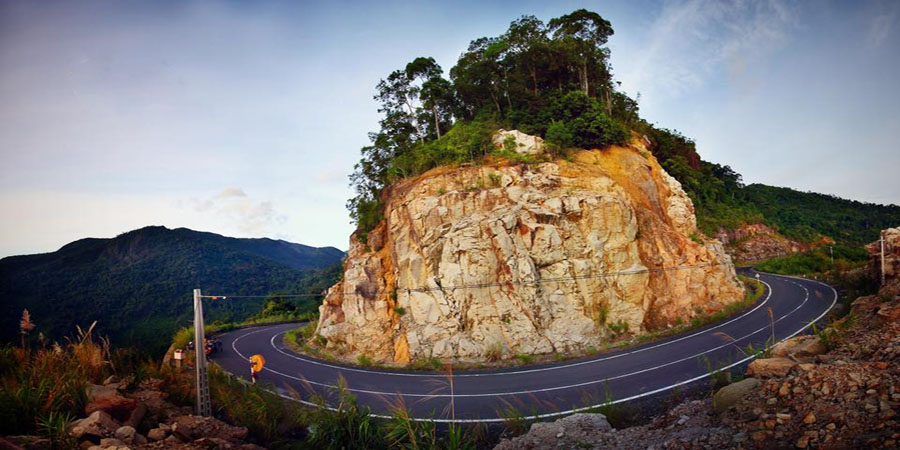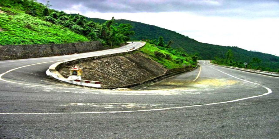 Con đường đèo như dải lụa quanh co uốn lượn khúc khuỷu theo sườn núi, một bên là vách núi dựng đứng, một bên là vực sâu thăm thẳm hẳn sẽ là một thử thách lớn với những ai ưa mạo hiểm.