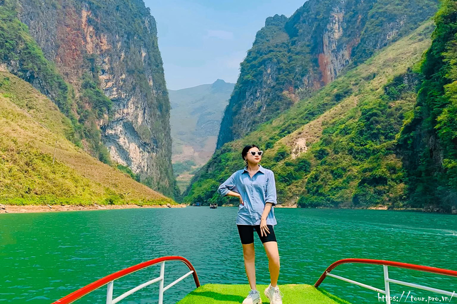13h30: Xe và hướng dẫn viên đưa Quý khách chinh phục đèo Mã Pí Lèng cung đường huyền thoại trên “Con đường Hạnh Phúc”. Từ đây, Quý khách sẽ được chiêm ngưỡng hẻm Tu Sản kỳ vĩ bên dòng sông Nho Quế xanh biếc - nơi được mệnh danh là hẻm vực sâu nhất và ngoạn mục bậc nhất Đông Nam Á.