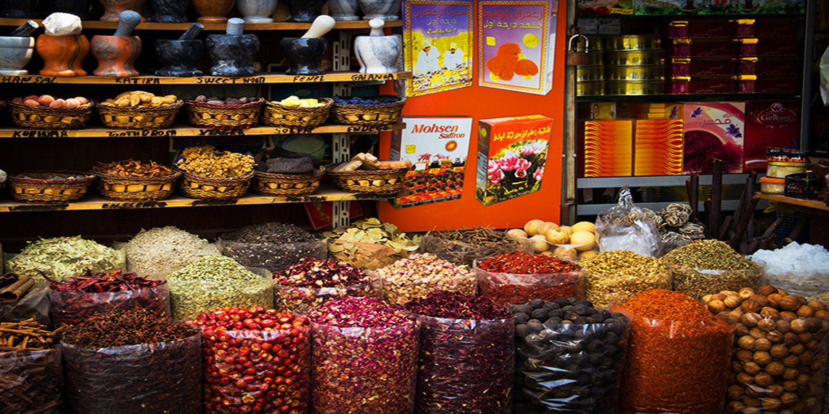 • Chợ gia vị (Spicy Souk): Nơi đây như một tấm bảng đầy màu sắc rực rỡ, sẽ cho du khách cảm giác ấn tượng, độc đáo với nhiều mùi hương đậm đà. Ngoài những yếu phẩm đặc trưn của vùng Trung Đông như bột cà ri, ống quế cuộn,… khu chợ này còn có bán rất nhiều gia vị bí truyền, búp hoa sấy khô, các loại hạt, nhục đậu khấu, trầm hương, trà thảo mộc cùng các loại mỹ phẩm từ Ấn Độ, Iran, Zanzibar Srilanka, Pakistan,…Trong đó, nhục đậu khấu và một số gia vị khác từng có giá trị quý ngang với vàng trong lịch sử mà ít ai biết được.