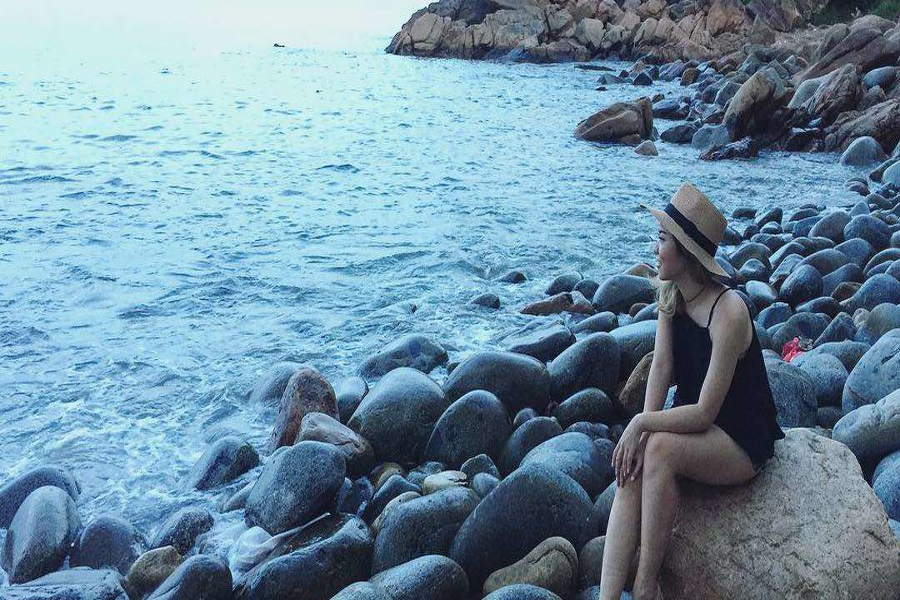 Từ trên sườn đồi có thể ngắm bao quát toàn bộ phía Đông thành phố Quy Nhơn như một bức tranh thủy mặc. Địa chỉ khu du lịch Ghềnh Ráng ở số 3 đường Hàn Mặc Tử.