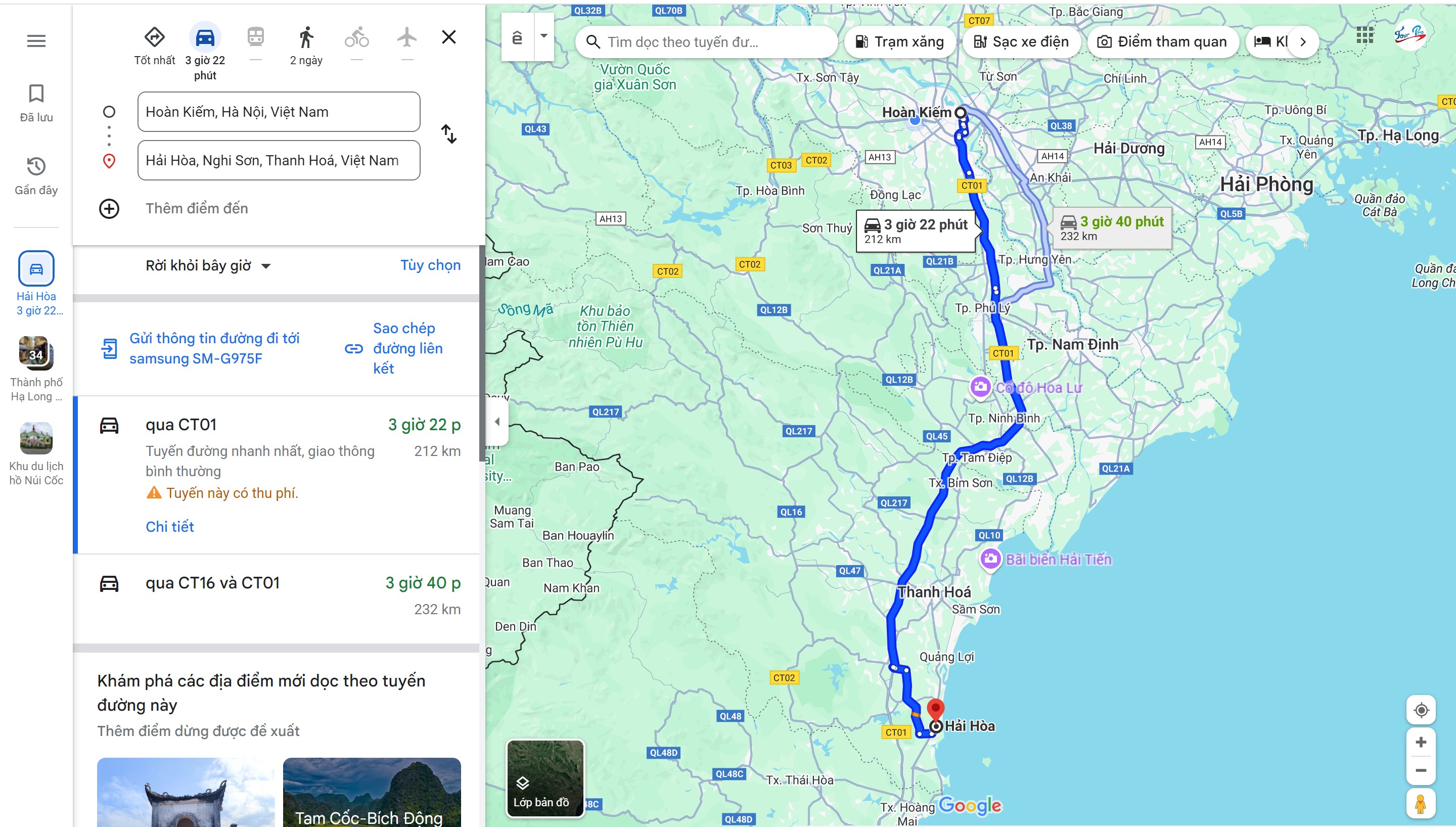 Xe khách giường nằm Huy Phú, Giá vé: 150.000 VNĐ - 200.000 VNĐ/lượt, Tần suất mỗi ngày một chuyến buổi sáng, điểm đón khách: Trần Khánh Dư, Hà Nội. Điểm trả khách: Bãi biển Hải Hòa Nghi Sơn.