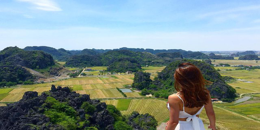 Lên đến đỉnh núi Múa, bạn phải vượt qua gần 500 bậc đá, khá mỏi nhưng lại vô cùng xứng đáng, lên đến đỉnh bạn sẽ được phóng tầm mắt chiêm ngưỡng trọn vẹn cảnh đẹp của Tràng An, cùng với những bậc đá uốn mình mềm như những dải lụa đào, và có điểm vàng của những cánh đồng lúa chín. Tất cả vẻ đẹp của trời, đất và nước sẽ gói gọn lại trong những bức hình của bạn.