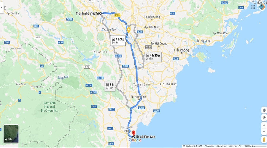 Theo gợi ý tuyến đường tốt nhất từ Google Maps, thì khu du lịch biển Sầm Sơn nằm cách thành phố Việt Trì, Phú Thọ 248 km. Với thời gian di chuyển ô tô khoảng 4h03’ nên du khách có thể thoải mái lựa chọn các phương tiện như: Ô tô, xe khách, xe máy....