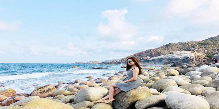 Đi du lịch Quy Nhơn, bạn không chỉ thích thú với không gian bình yên, trong lành của thành phố biển mà còn được ngắm nhìn hàng ngàn viên đá khổng lồ với những hình dáng độc đáo, nhẵn mịn như muôn vàn quả trứng khủng long khổng lồ lúc trắng ngần, lúc đục màu đổ xám và cả những họa tiết đẹp đến kỳ diệu nằm san sát nhau, tạo nên vẻ đẹp độc đáo không phải bãi biển nào cũng có.