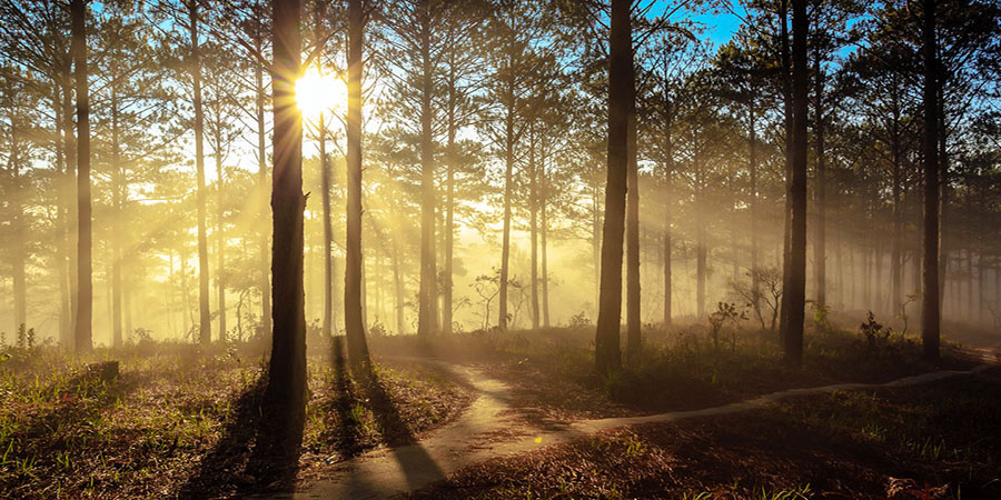 Khi những ánh mặt trời chiếu những tia nắng lấp lánh, xuyên qua những kẽ lá của cánh rừng thông tạo nên một cảnh tượng đẹp đến ngây ngất lòng người.