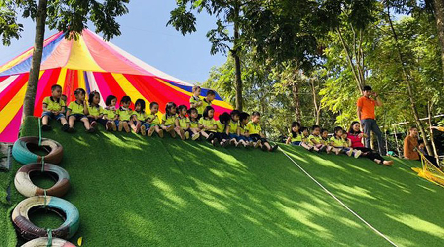 Khu vui chơi trẻ em được trải cỏ nhân tạo với những khuôn viên trò chơi nổi bật như: trượt cỏ, trò chơi dân gian, sasuke. Chắc chắn sẽ mang đến cho các bạn nhỏ nhưng giây phút vui chơi vui vẻ, bổ ích, tăng cường sức khỏe.