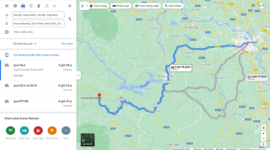 Avana Retreat Mai Châu ở đâu ? cách trung tâm thành phố Hà Nội khoảng 165km, bạn sẽ mất khoảng gần 4h đồng hồ di chuyển bằng đường bộ theo chỉ dẫn từ Google Maps. Là một trong những khu nghỉ dưỡng rộng hơn 15ha trên một ngọn đồi thuộc bản Pạnh, xã Bao La, huyện Mai Châu, tỉnh Hòa Bình.