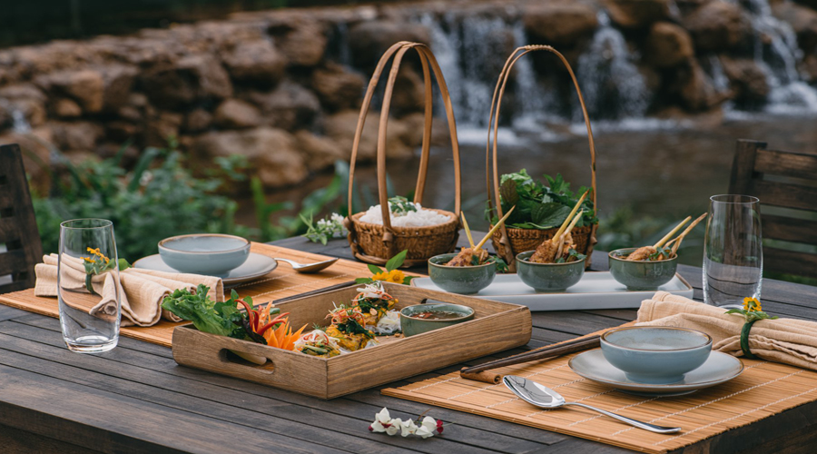 Bên cạnh đó, nếu có nhu cầu riêng bạn có thể đặt bàn ăn riêng gần bên bờ suối thanh tịnh, cùng gia đình quây quần bên mâm cơm thịnh soạn nghe tiếng suối chảy rì rào như một bản nhạc thanh tao vừa khiến tâm hồn trở nên nhẹ nhàng lại cho ta cảm giác bình yên đến lạ.