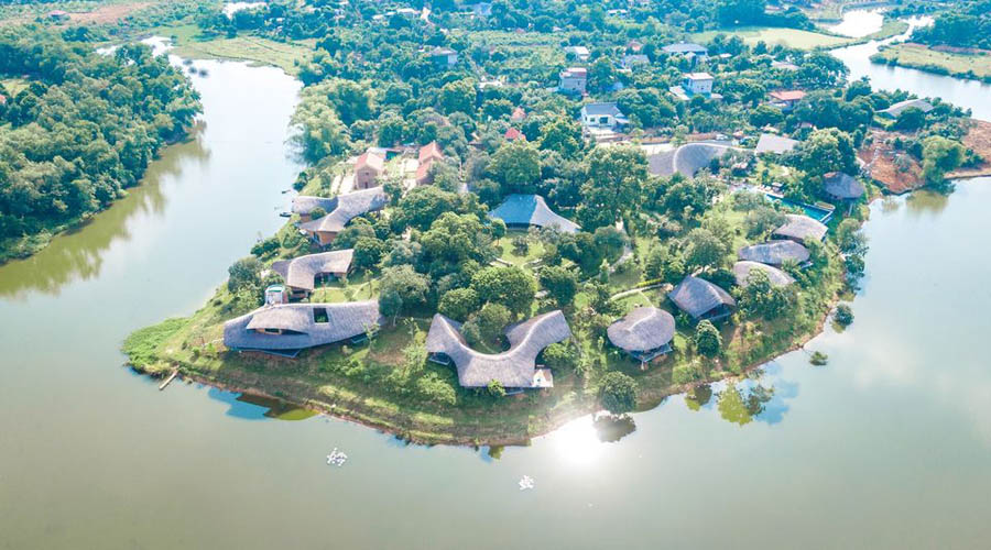 Với diện tích từ 100 - 140m2. Tất cả các biệt thự đều có view hướng ra hồ Láng Hậu hiền hòa. Được thiết kế từ các vật liệu thiên nhiên như: tre, gỗ, mái lá,.... sẽ mang đến cho bạn những phút giây thư giãn tuyệt vời nhất. Mỗi biệt thự có 3 phòng riêng, có sức chứa tối đa 9 người. Hạng phòng có giá từ: 2.400.000 đ - 2.700.000 đ/phòng/đêm.