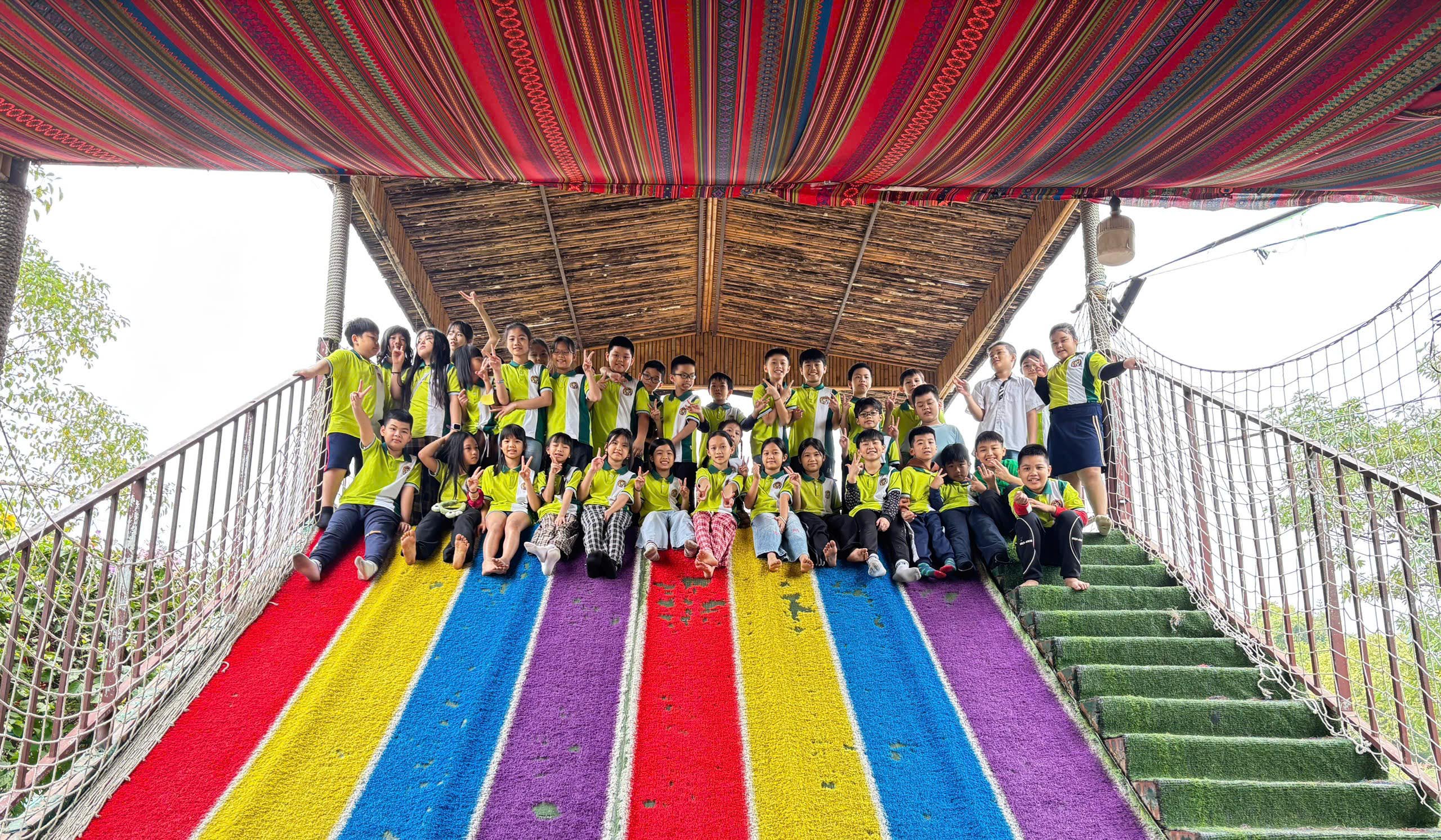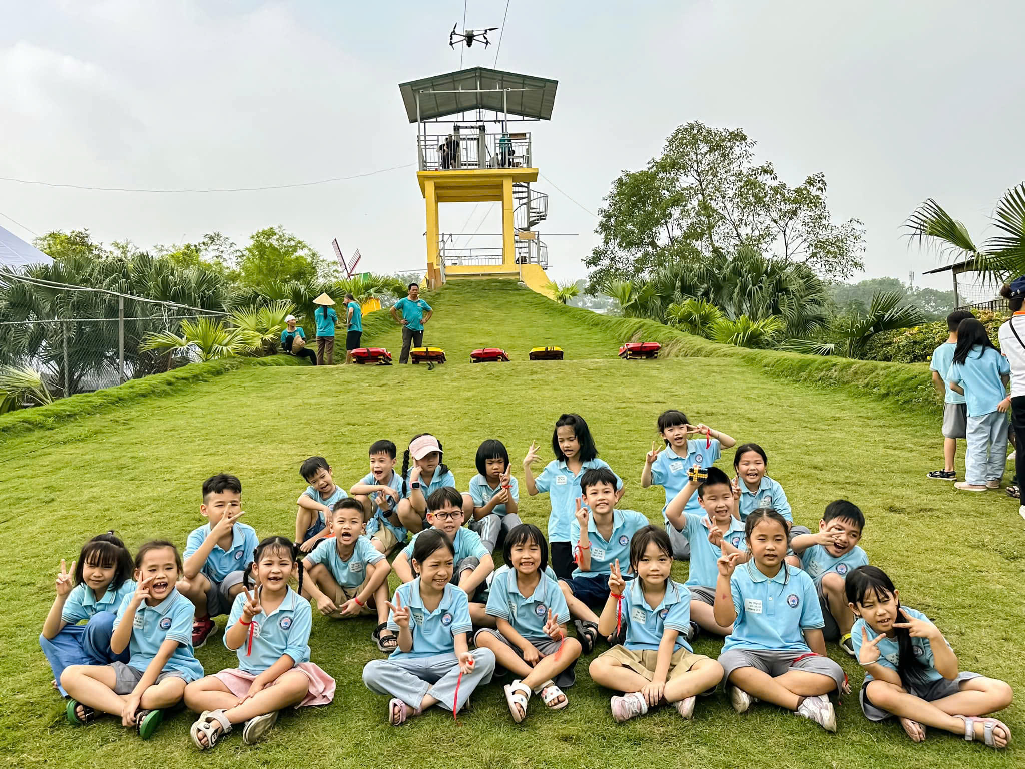 + Khu trò chơi vận động ngoài trời: Đây là nơi thu hút cả trẻ em lẫn người lớn với nhiều hoạt động sôi động. Du khách có thể thử sức với các trò như trượt cỏ, zipline mini, leo núi nhân tạo, bắn cung hay khu Sasuke thu nhỏ đầy thử thách. Bên cạnh đó còn có đua xe địa hình trẻ em và không gian vận động an toàn, rộng rãi. Đây là khu vực mang đến năng lượng vui tươi, phù hợp cho các nhóm bạn trẻ, gia đình và các chương trình team building.