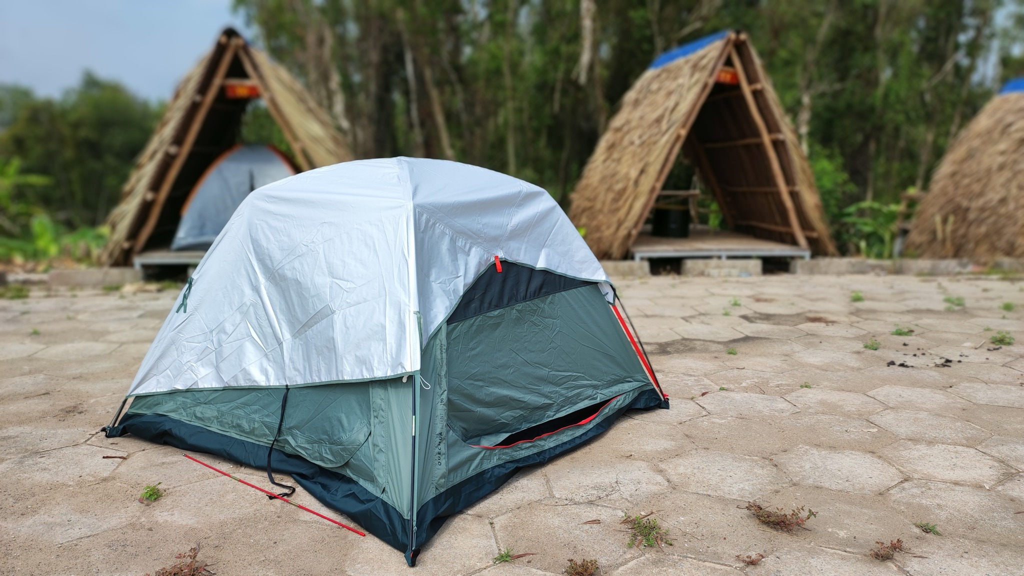Tại Làng nổi Tân Lập có khu vực dành riêng cho khách du lịch có nhu cầu cắm trại, du khách có thể thuê lều trại trực tiếp tại khu du lịch với mức giá hợp lý: