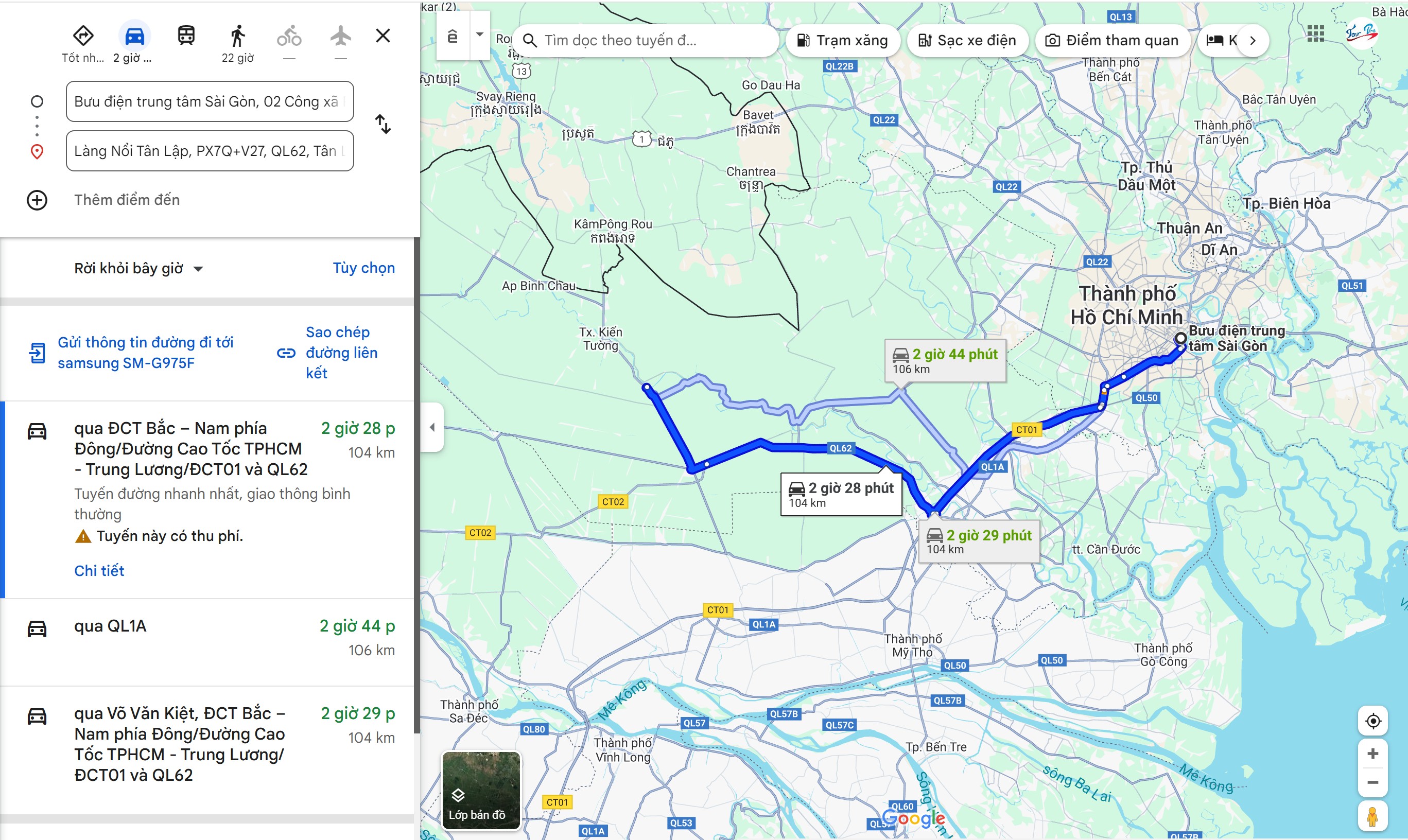 + Đi làng nổi Tân Lập bằng ô tô: Với cung đường di chuyển từ trung tâm thành phố Hồ Chí Minh đến làng nổi Tân Lập, nếu đi bằng ô tô, bạn có thể đi theo đường cao tốc Hồ Chí Minh - Trung Lương và nhập vào quốc lộ 62 sẽ tiết kiệm được nhiều thời gian và công sức lái xe.