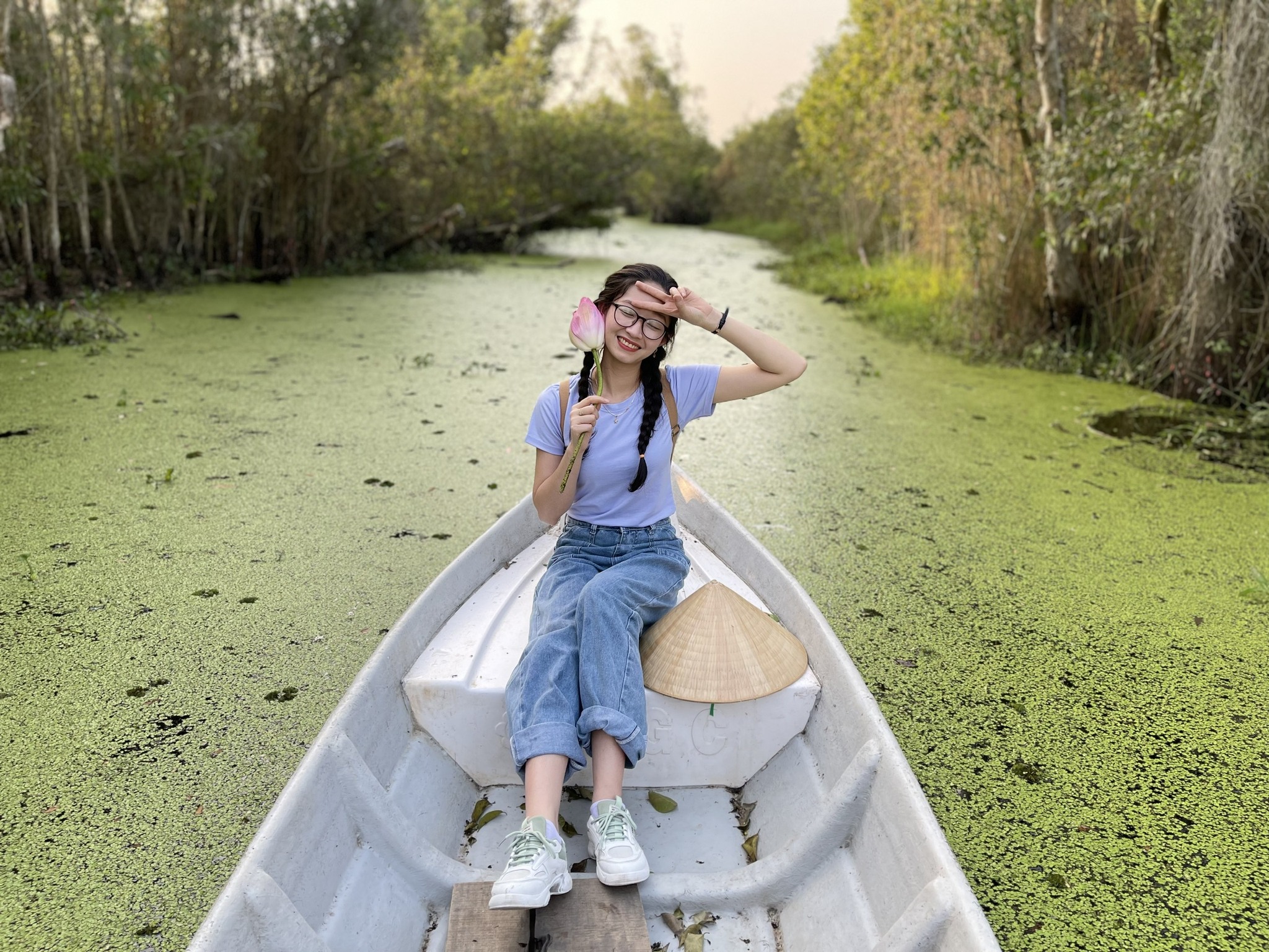 Chiều: Quý khách đến với khu du lịch làng Nổi Tân Lập, bắt đầu hành trình ngồi xuồng tham quan, khám phá rừng tràm, nghe hướng dẫn viên thuyết minh suốt chặng hành trình. Check in tại Cầu chữ X và Hồ Bán Nguyệt, ngắm nhìn toàn cảnh làng nổi Tân Lập tại vị trí tháp quan sát…
