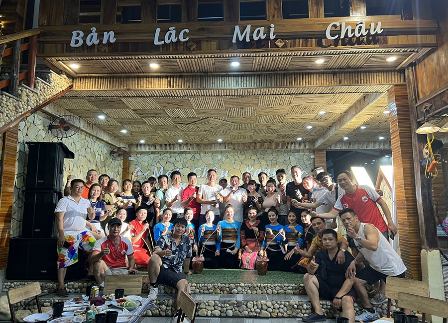 20h30: Quý khách tự do dạo chơi và tham gia các hoạt động giao lưu văn nghệ, đốt lửa trại, thưởng thức rượu cần cùng những chàng trai, cô gái Thái duyên dáng (Áp dụng cho đoàn từ 40 khách trở lên).
